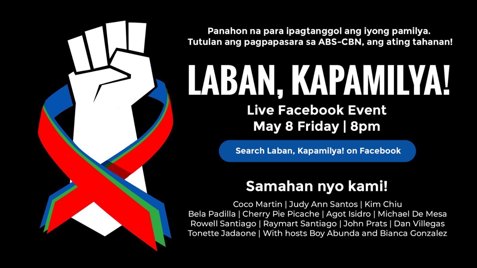 20200508 Laban Kapamilya ABS-CBN stars to protest vs shutdown via FB Live tonight. 593 talking about this. 2403584 talking about this.